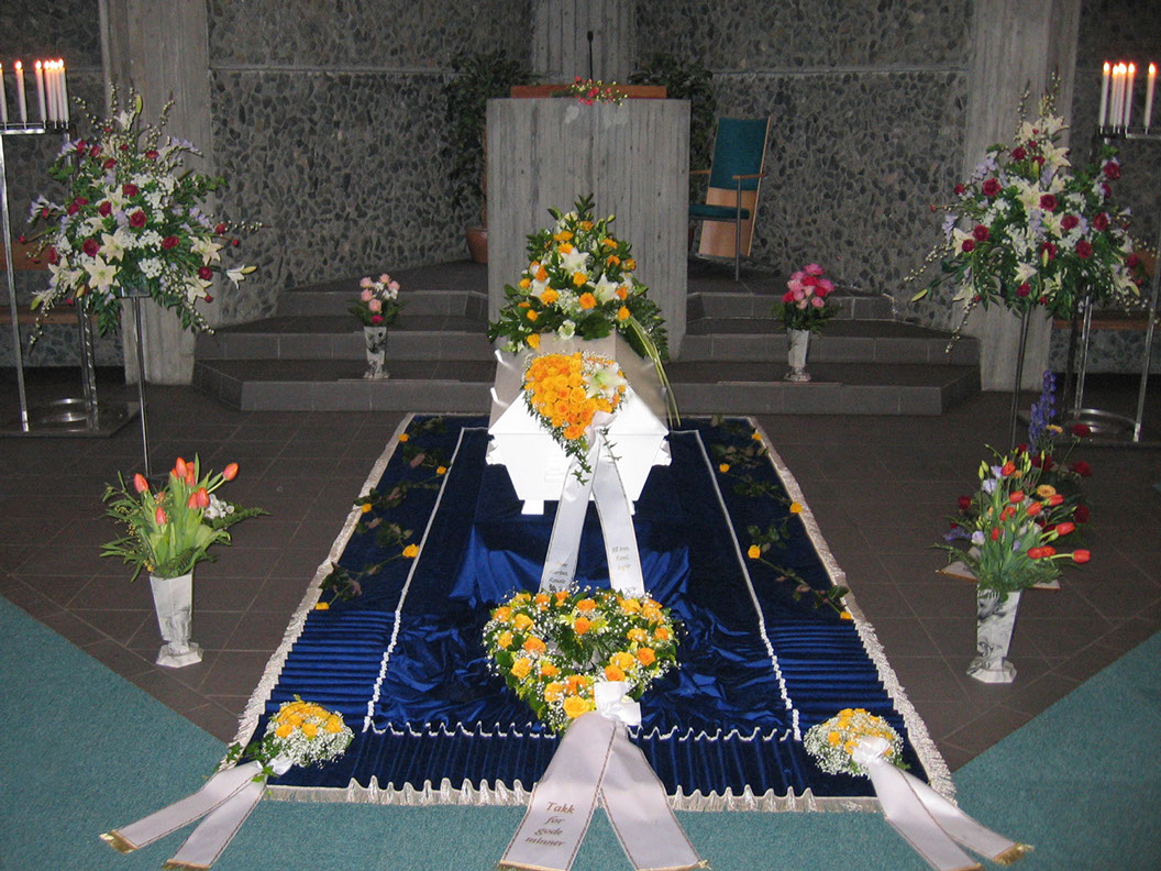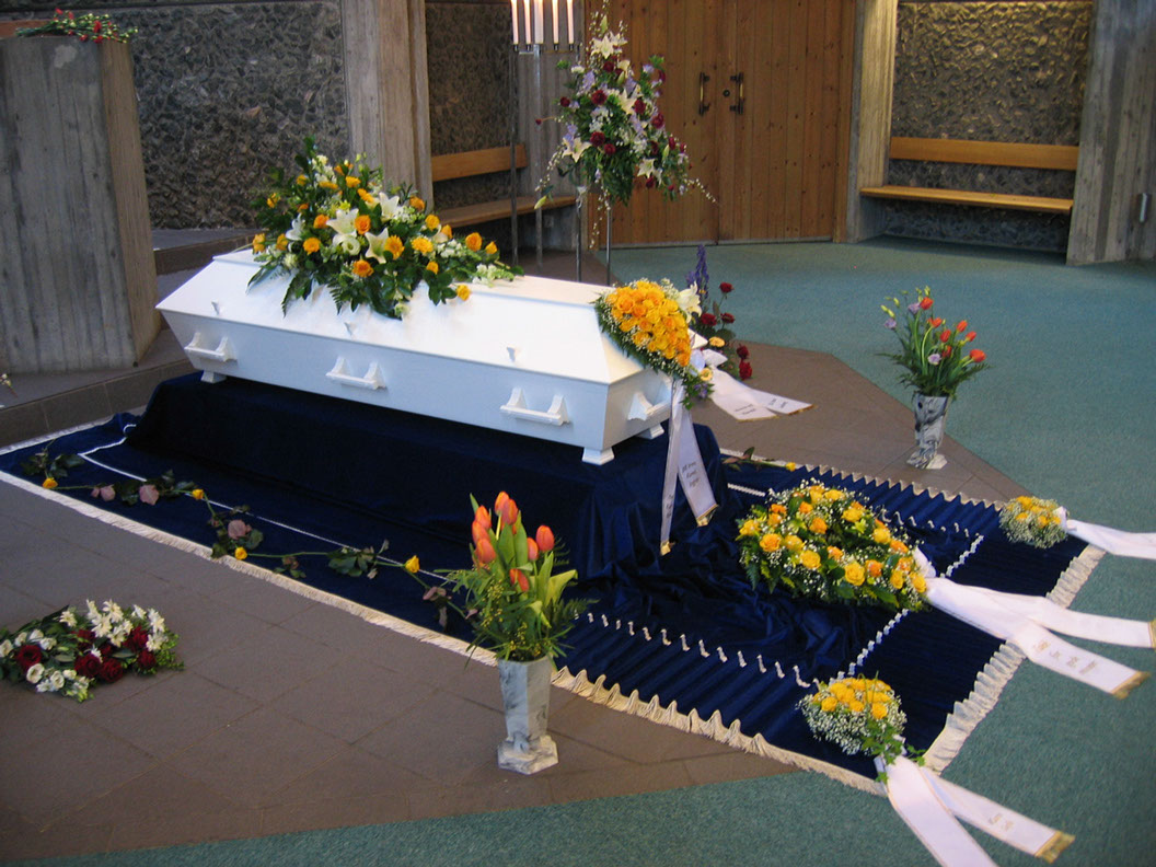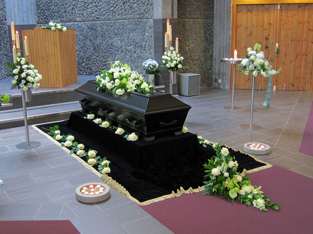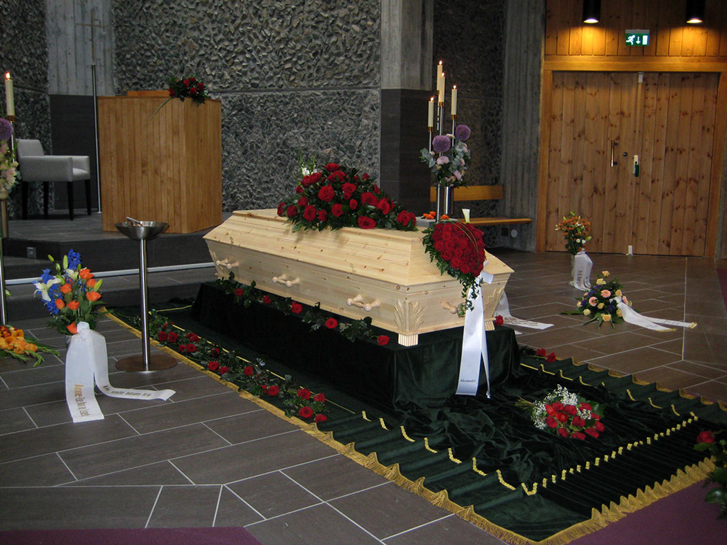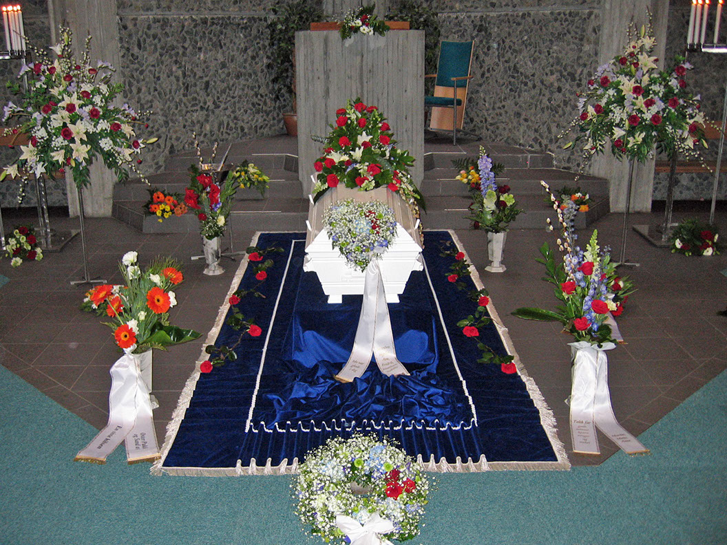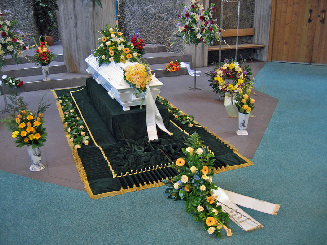 Til seremonien er det vanlig at kisten og teppet rundt kisten er pyntet med blomster fra familien.