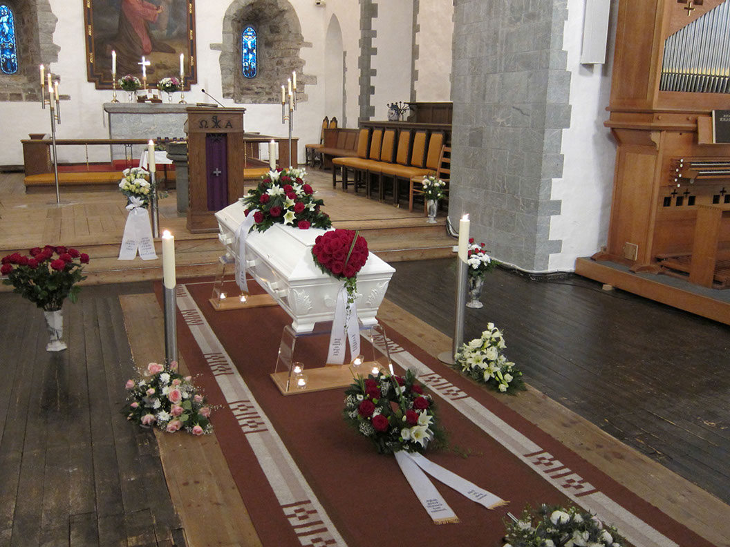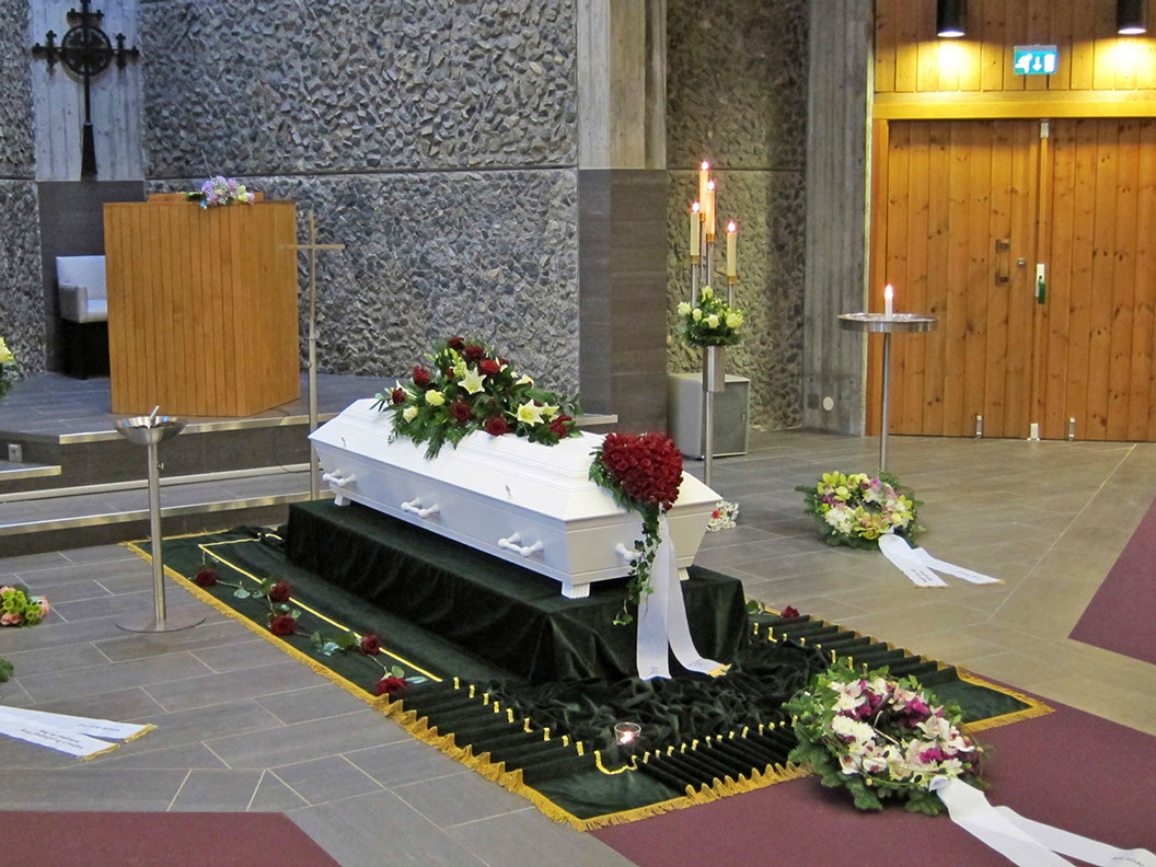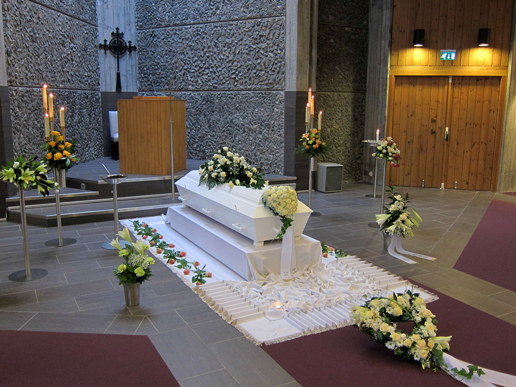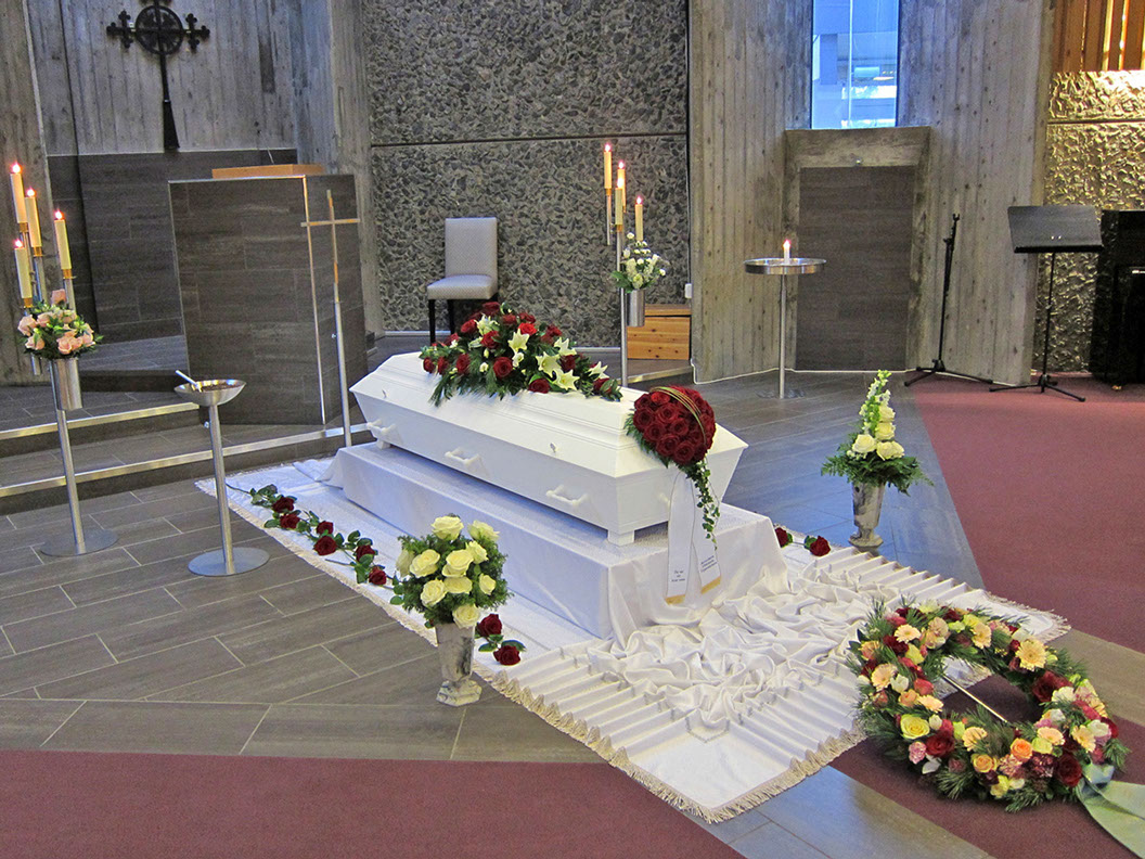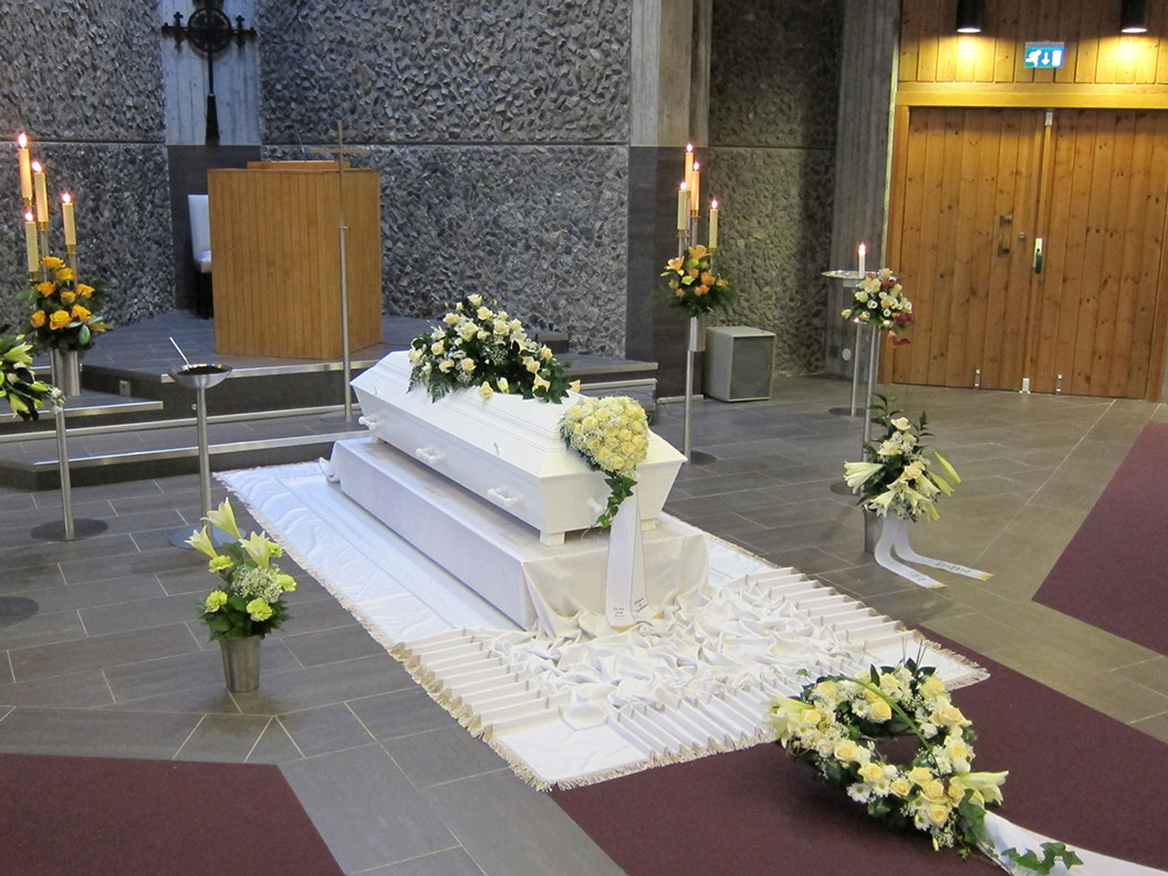 Til seremonien er det vanlig at kisten og teppet rundt kisten er pyntet med blomster fra familien.