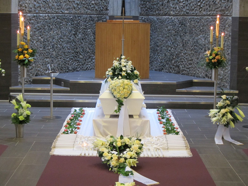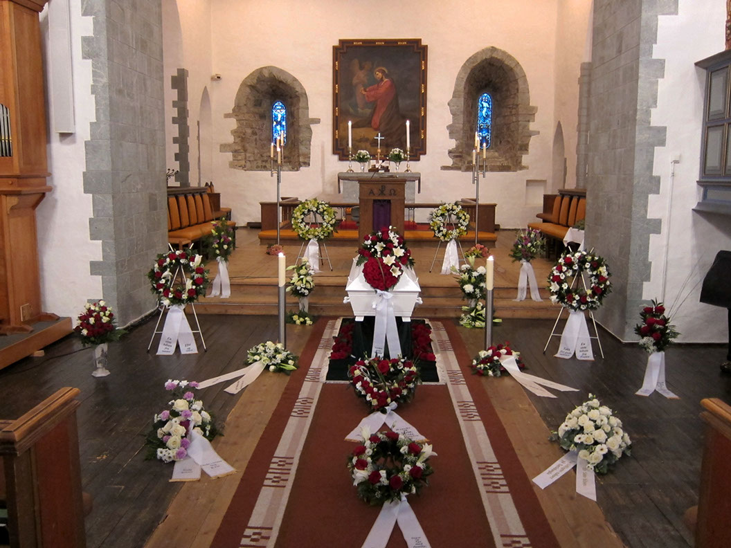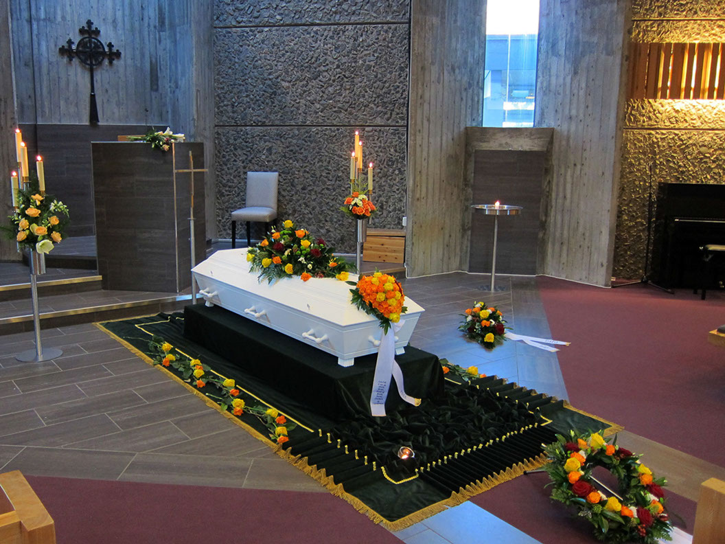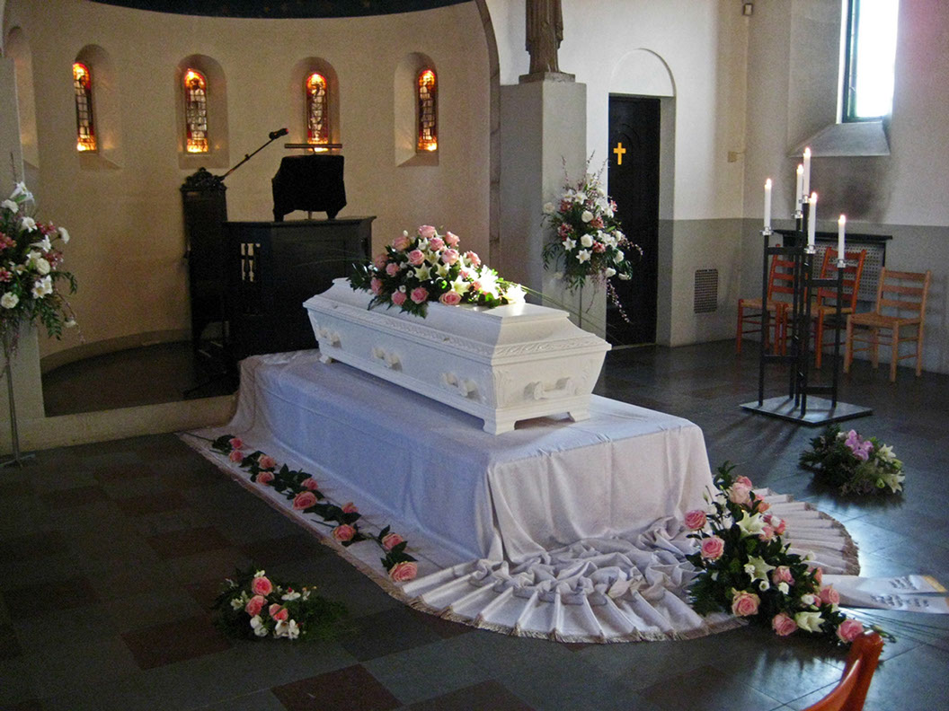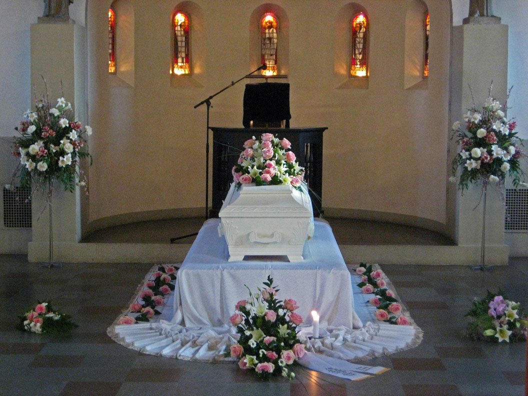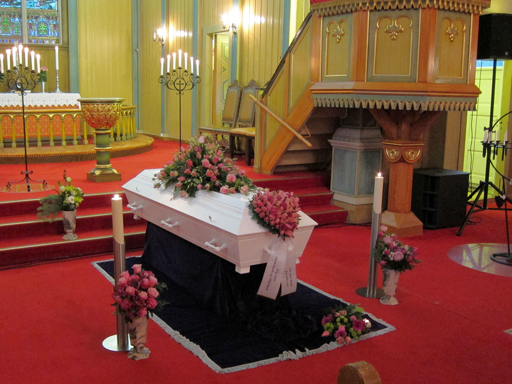 Til seremonien er det vanlig at kisten og teppet rundt kisten er pyntet med blomster fra familien.