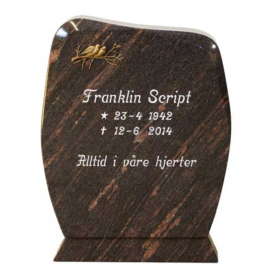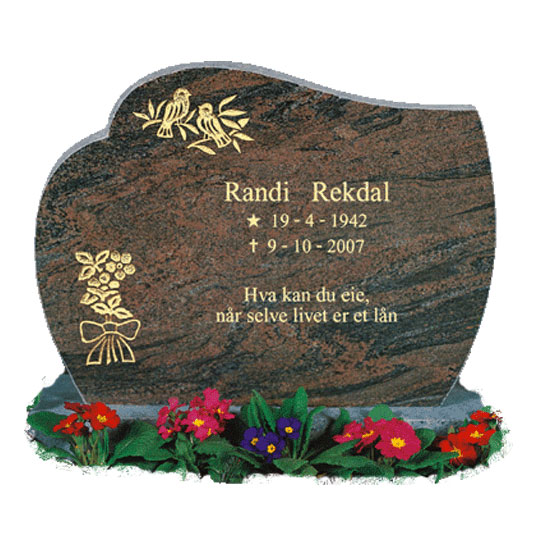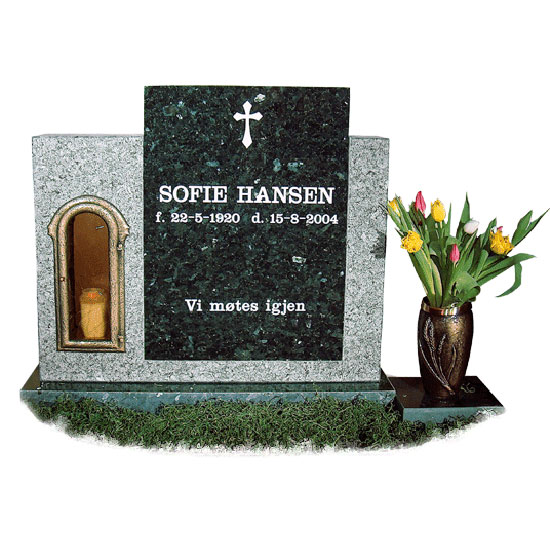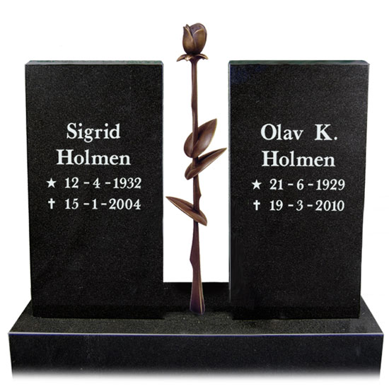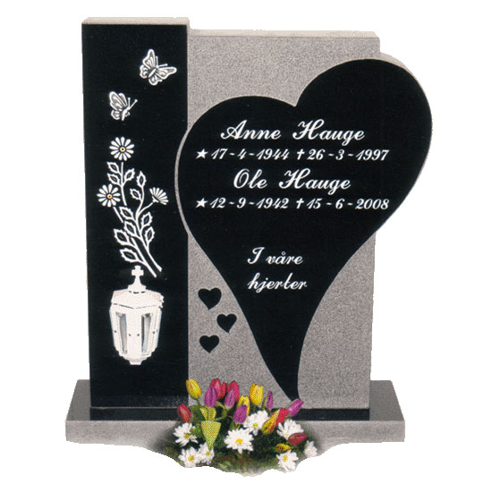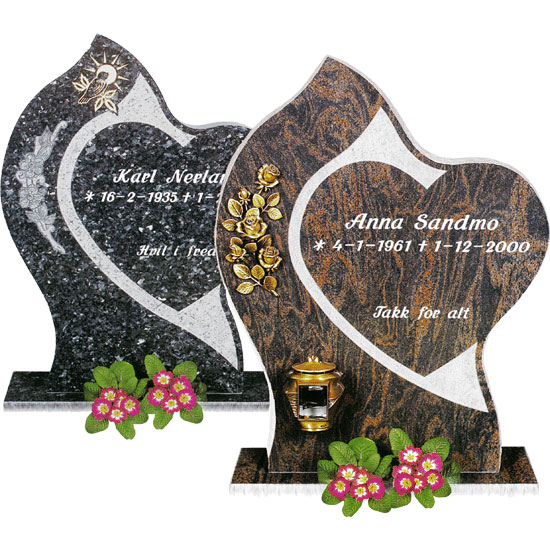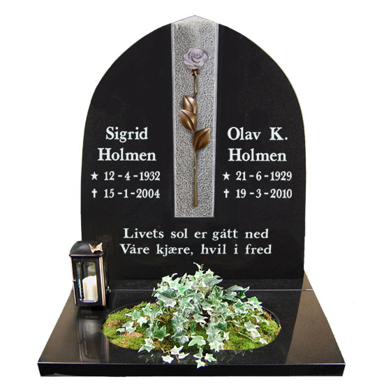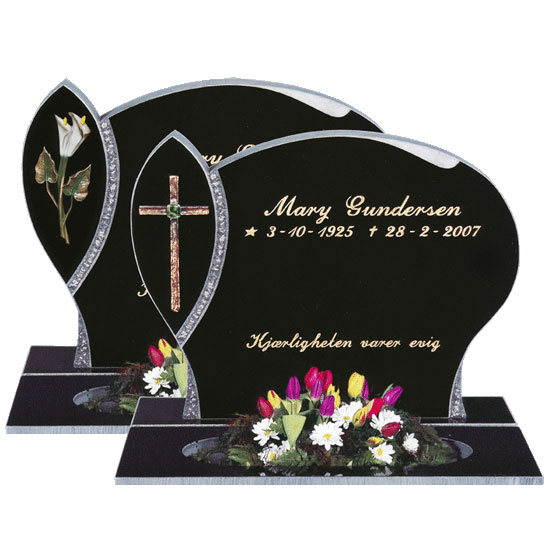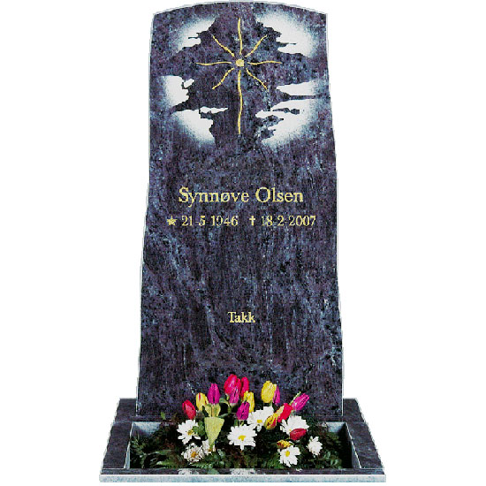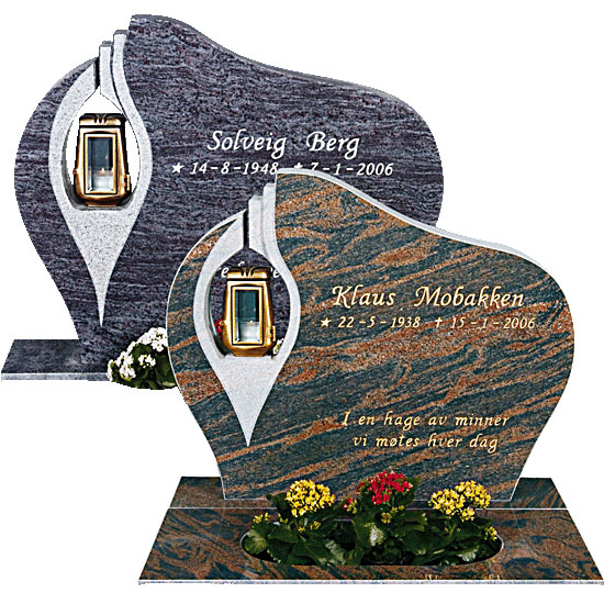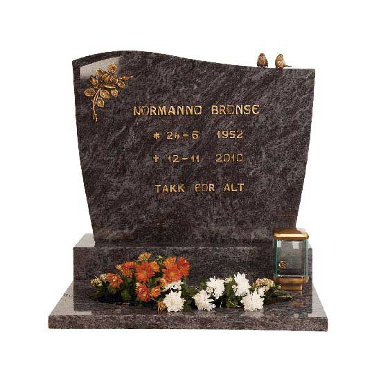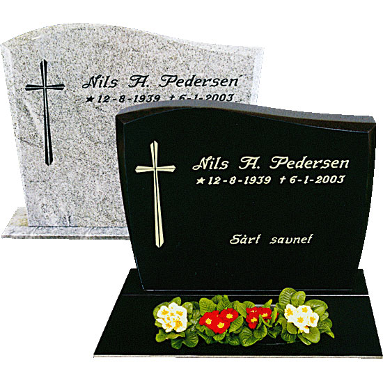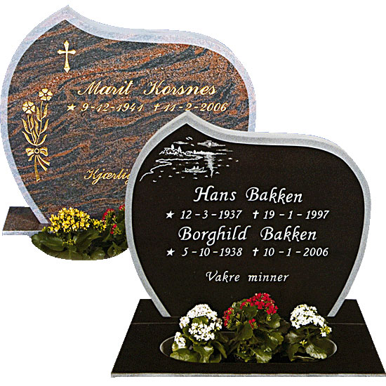Under er et utvalg av de gravmonumentene vil kan tilby. Det er fullt mulig å endre steinsort og ornamenter hvis man ønsker det. Har man egne tanker om spesiell utforming er det også mulig å etterkomme.